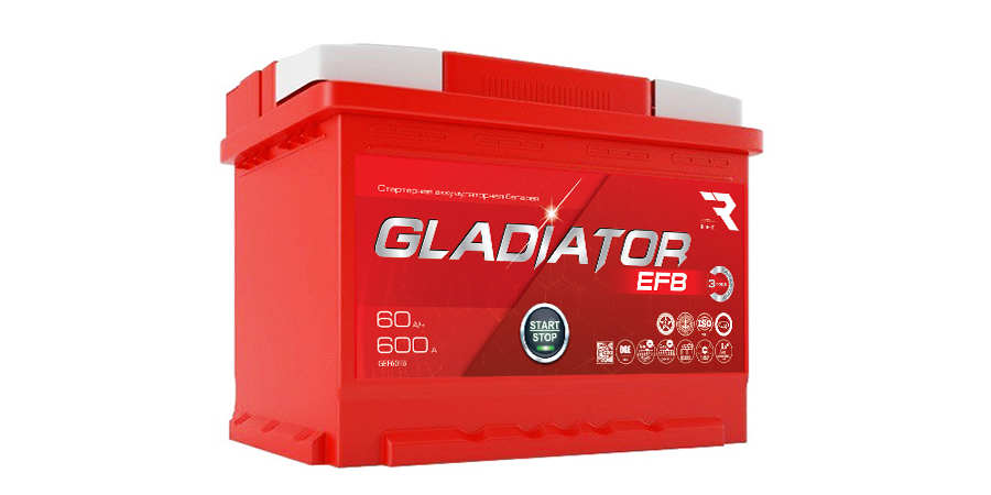 АКБ GLADIATOR EFB 60 А/ч обратная полярность
