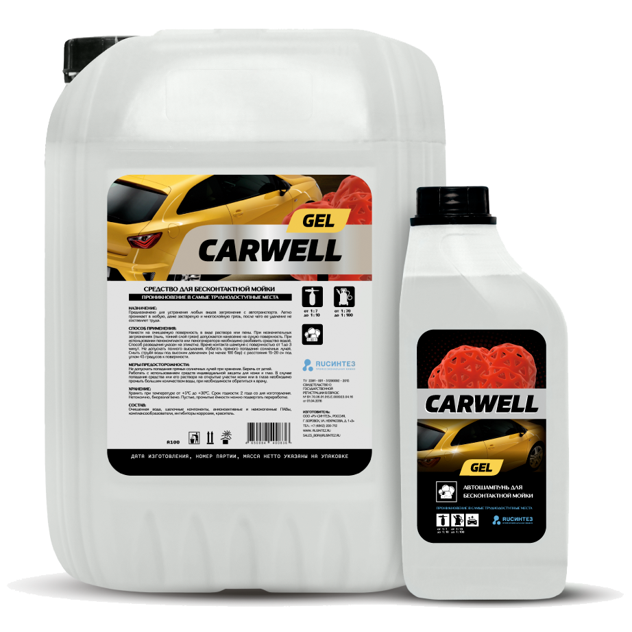 Шампунь для бесконтактной мойки Carwell Gel является эффективным помощником в борьбе с застарелой грязью.