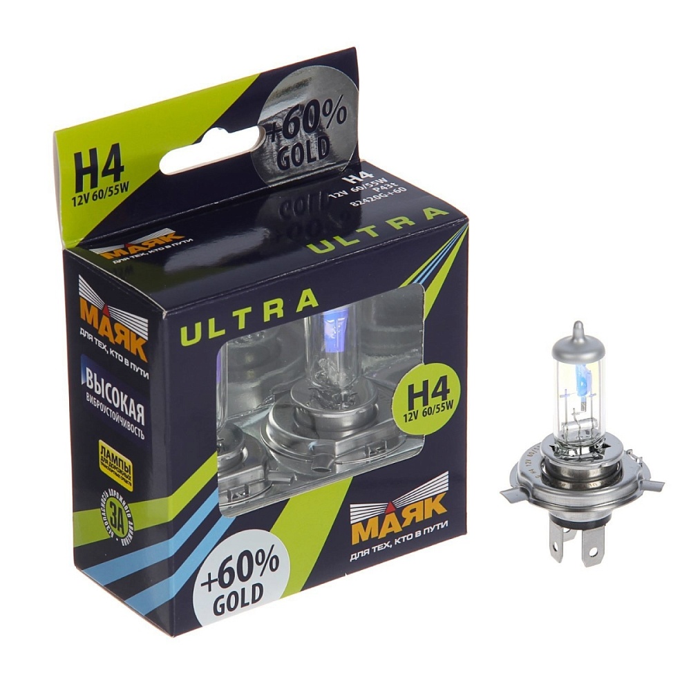Лампы H4 12V60/55W МАЯК ULTRA GOLD +60% (2шт)