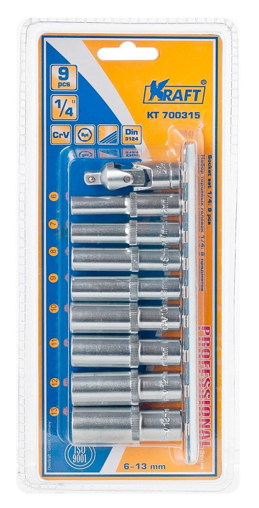 Набор глубоких торцевых головок 9 предметов позволяет производить слесарно-монтажные работы с различными типами крепежа в диапазоне размеров 6-13мм для работы с приводом ¼''Dr.(6,35мм).Наличие товара в магазинах