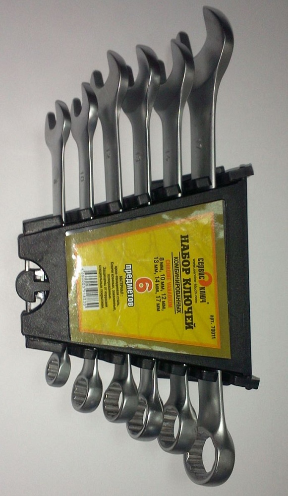 Набор ключей 6 предметов состоит из:ключей размера: 8, 10, 12, 13, 14, 17