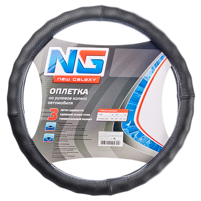 Оплетка на руль NEW GALAXY 38см черная нат.кожа с захватом руля 708-274