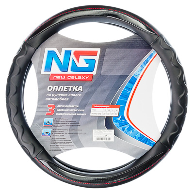 Оплетка на руль NEW GALAXY 38см черная с захватом руля PU1108002 708-417