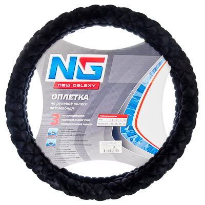 Оплетка на руль NEW GALAXY 38см спонж-рельеф черный 708-036