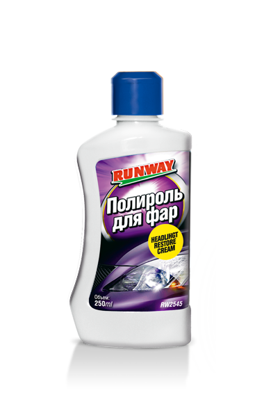 Высококачественный абразивный полироль "Runway" предназначен для фар головного света, задних фонарей. Эффективно удаляет мелкие и средние царапины, помутнения и загрязнения, возникающие в процессе эксплуатации на пластиковых фарах автомобиля. Восстанавливает прозрачность фар за 5 минут. Также может использоваться для реставрации пластмассовых поверхностей, акриловых лакокрасочных покрытий, а также изделий из плексигласа. Может использоваться для ручной и машинной полировки. Не содержит силикона.Наличие товара в магазинах