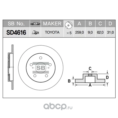 Диск тормозной для Toyota Corolla/Auris/задний/SD4616/Hi-Q